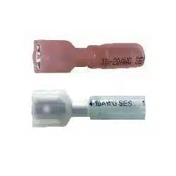 Slip on connectors in red, yellow and clear-blue, and various gauges.