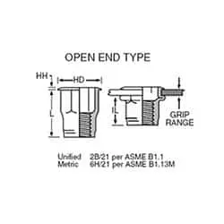 Threaded Hex Insert highlights a radius corner hex body. When connected into a similar hex hole, the radius corners of the A-H Insert expand and fill the hole corners providing excellent protection to spinning in the panel.