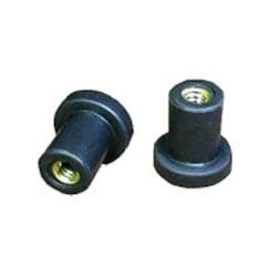 The WELL-NUT® threaded insert is a flanged neoprene bushing with a brass machine nut molded into one end.
